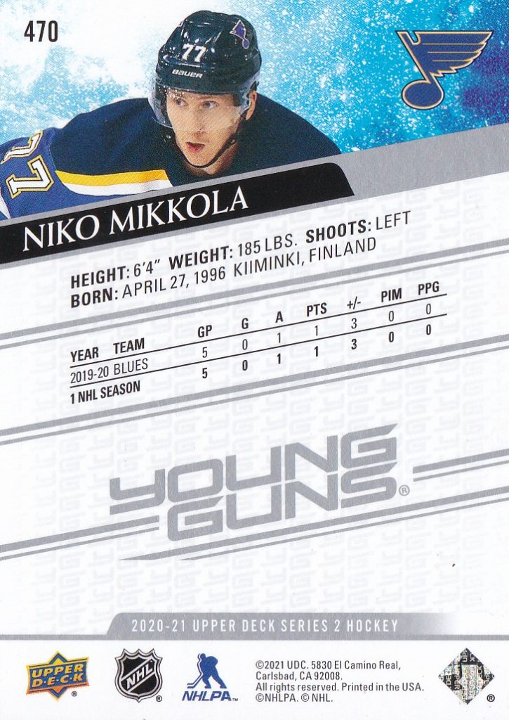 2020-21 Upper Deck #470 Niko Mikkola