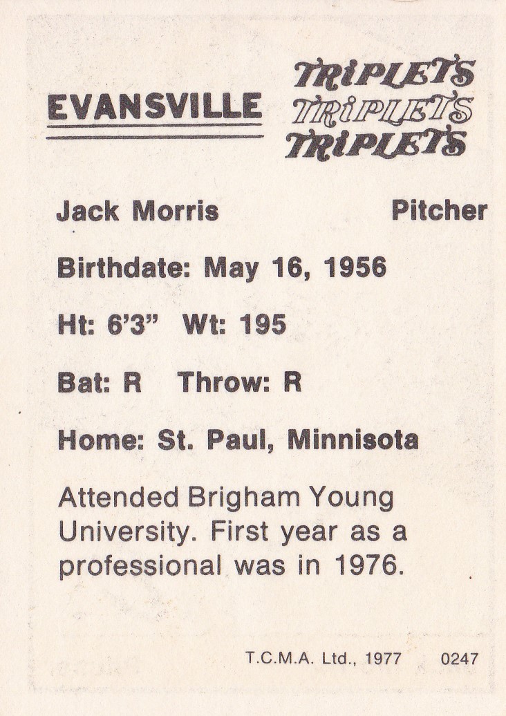 1977 TCMA Evansville Triplets Jack Morris [b]