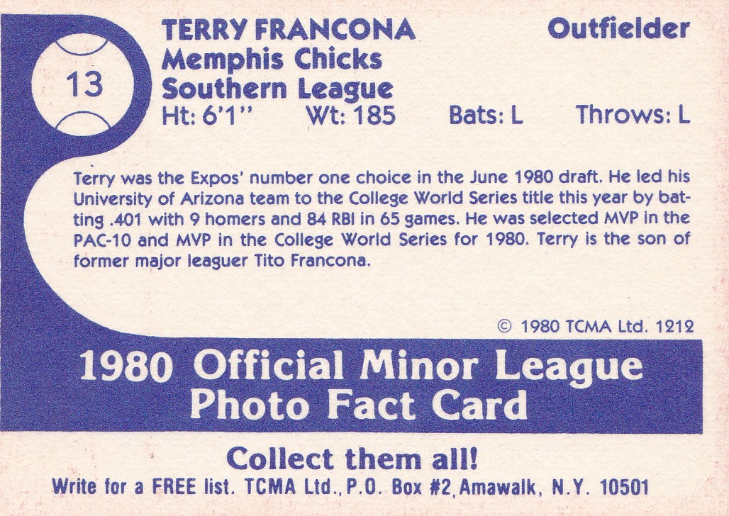 1978 TCMA Memphis Chicks #13 Terry Francona [b]