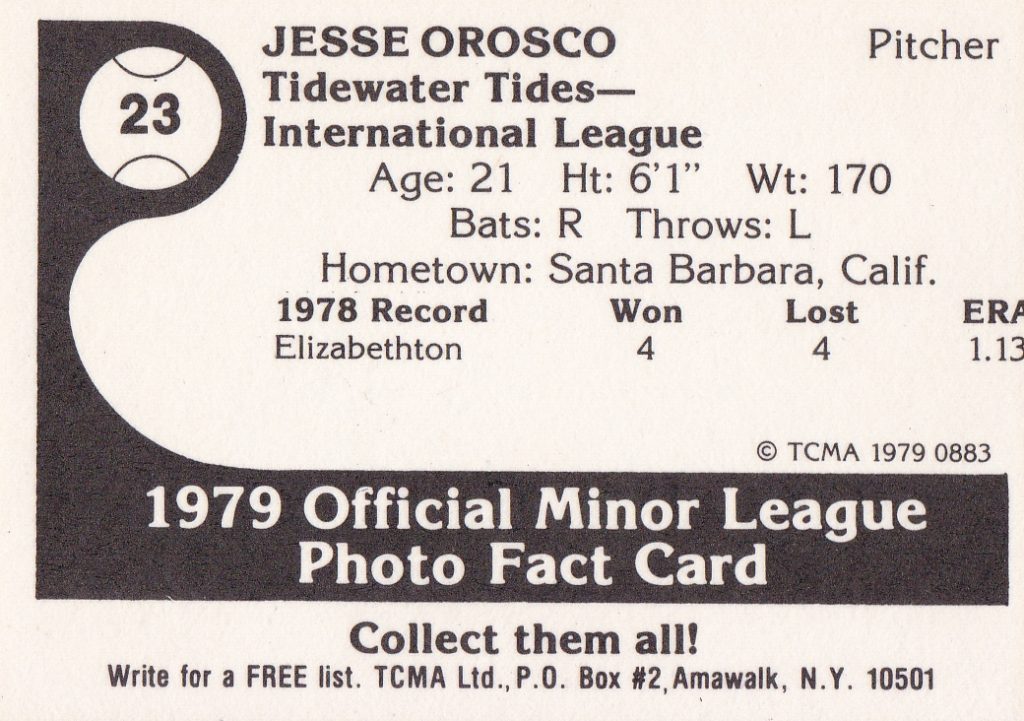 1979 TCMA Tidewater Tides #883 Jesse Orosco