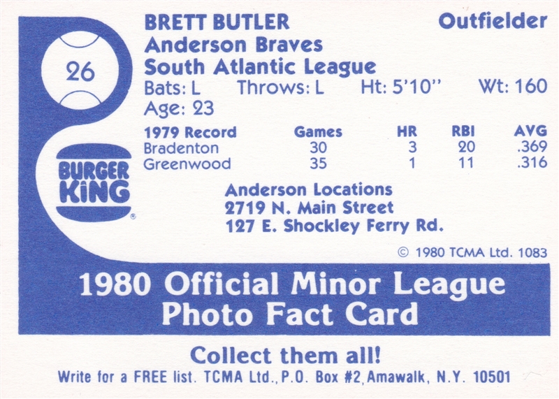 1980 Anderson Braves #26 Brett Butler (b)