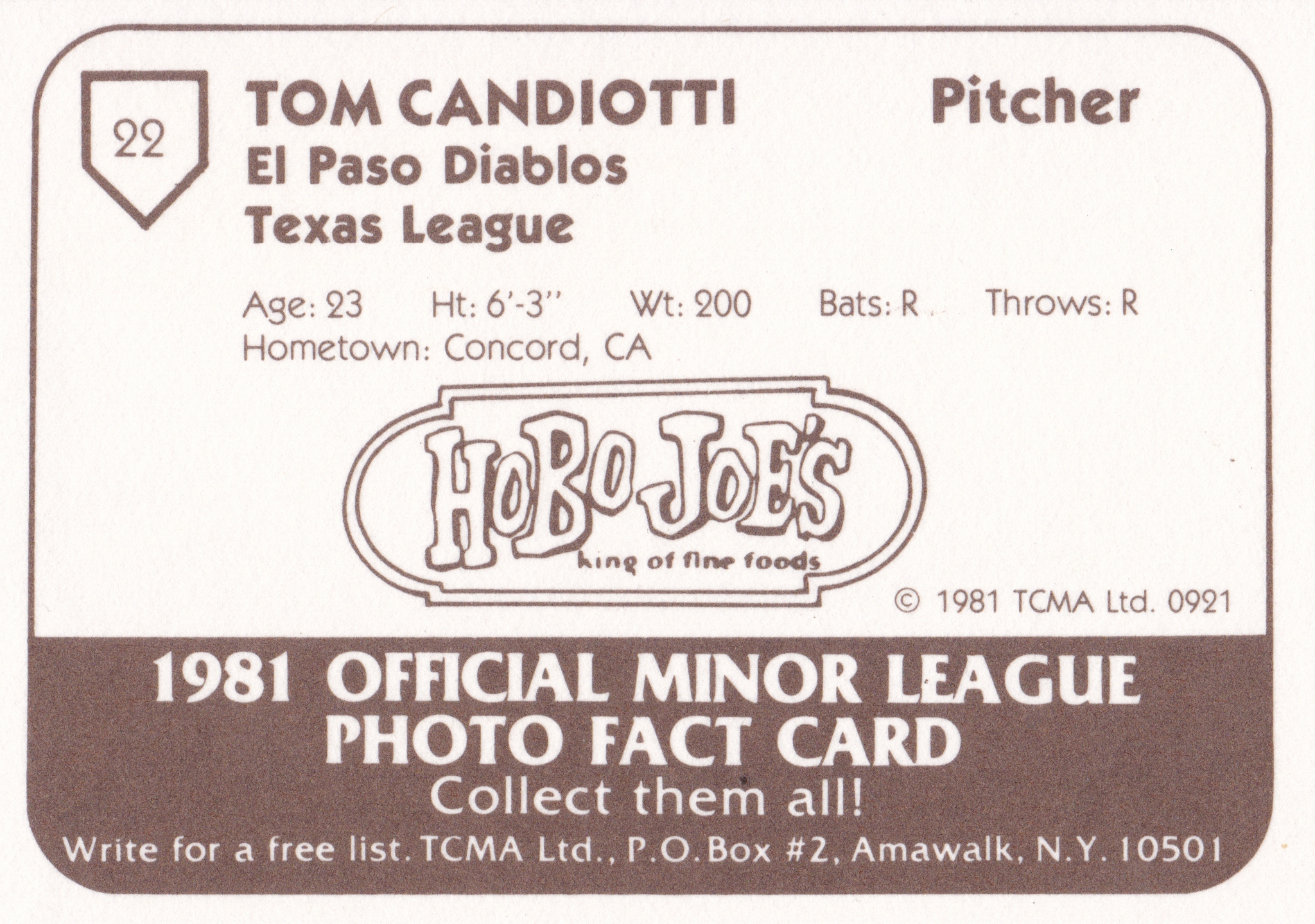 1981 TCMA El Paso Diablos Tom Candiotti #22