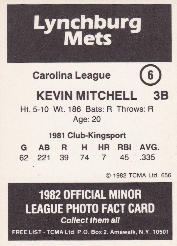 1982 TCMA Lynchburg Mets #656 Kevin Mitchell [b]
