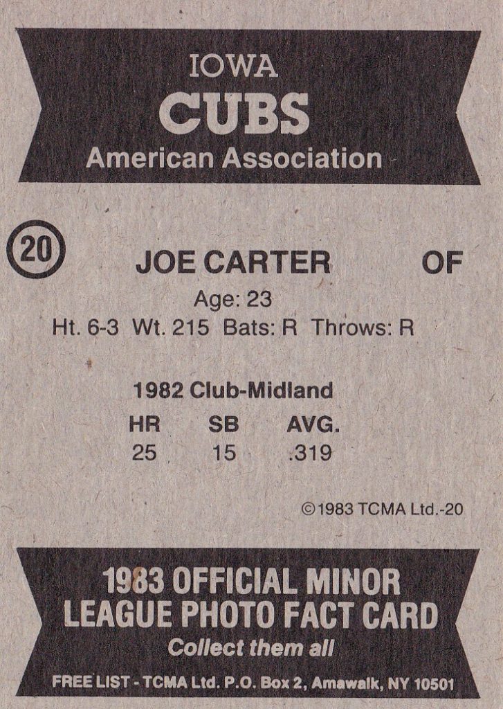 1983 TCMA Iowa Cubs #20 Joe Carter [b]
