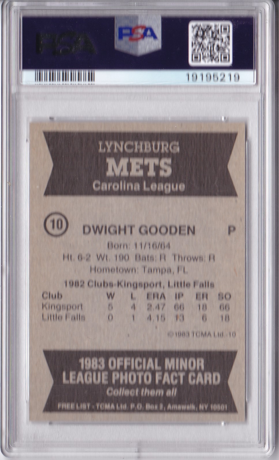 1983 TCMA Lynchburg Mets #10 Dwight Gooden [b]