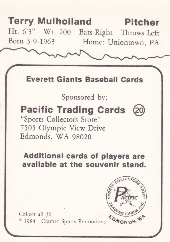 1984 Cramer Everett Giants #20 Terry Mulholland [b]