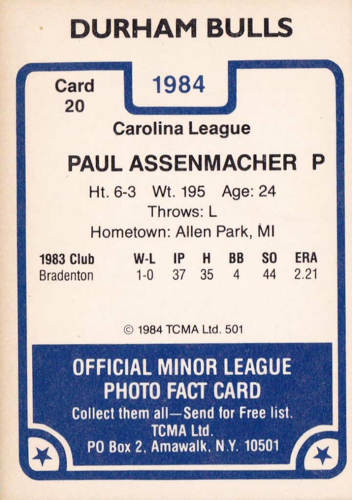 1984 TCMA Durham Bulls #20 Paul Assenmacher
