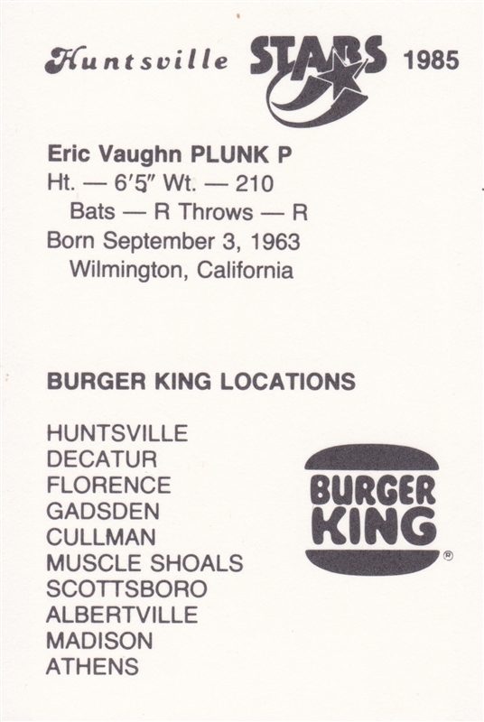 1985 Burger King Huntsville Stars Eric Plunk