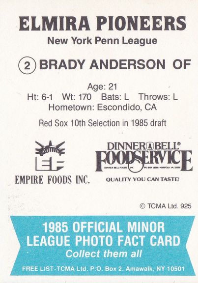 1985 TCMA Elmira Pioneers #925 Brady Anderson [b]