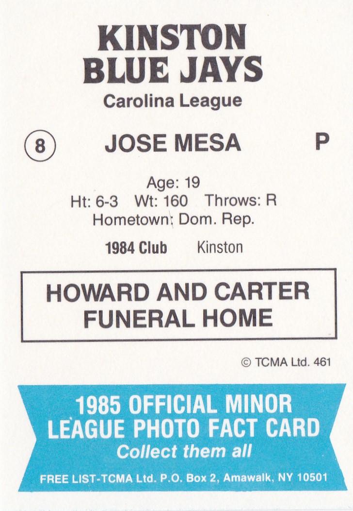1985 TCMA Kinston Blue Jays #8 Jose Mesa (b)