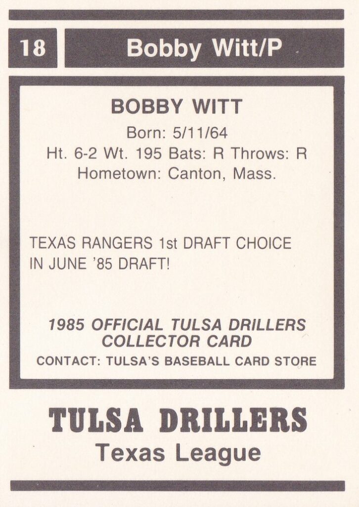 1985 Tulsa Drillers #12 Bobby Witt [b]