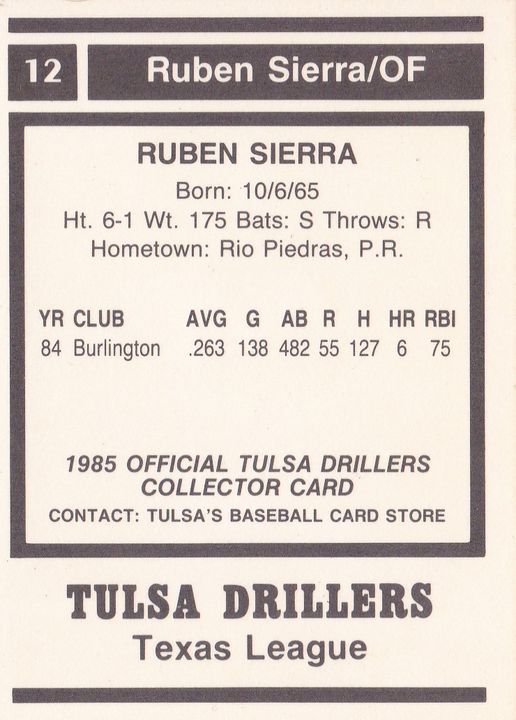 1985 Tulsa Drillers #12 Ruben Sierra [b]
