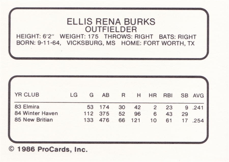 1986 New Britian Red Sox Ellis Burks (b)