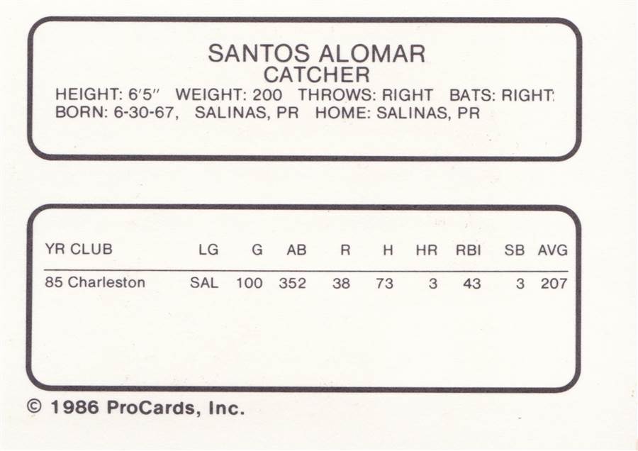 1986 Procards Charleston Gators Sandy Alomar Jr.