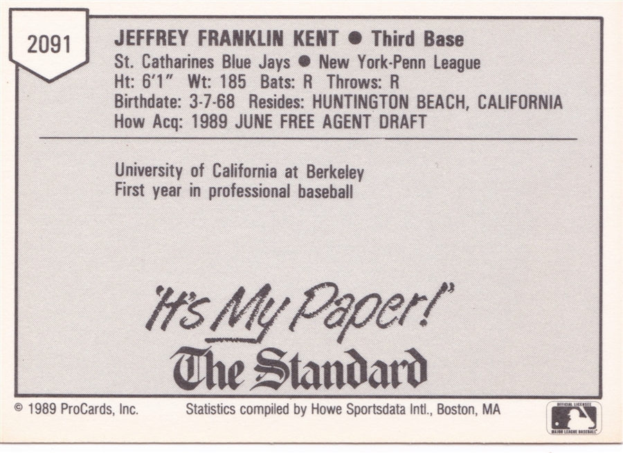 1984 Cramer Everett Giants #20 Terry Mulholland