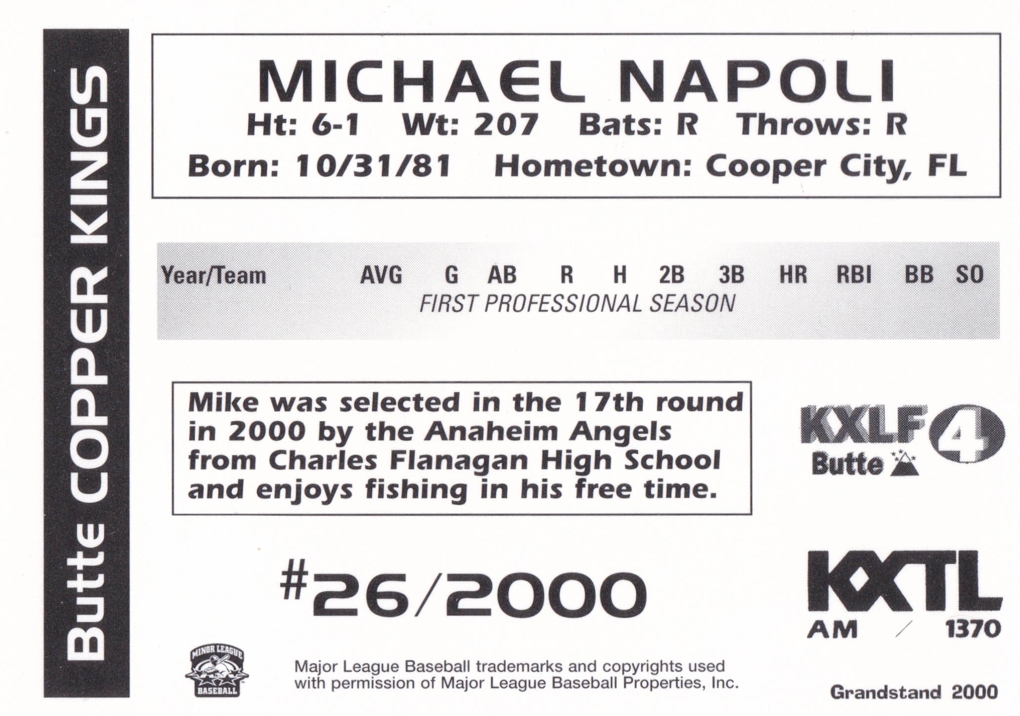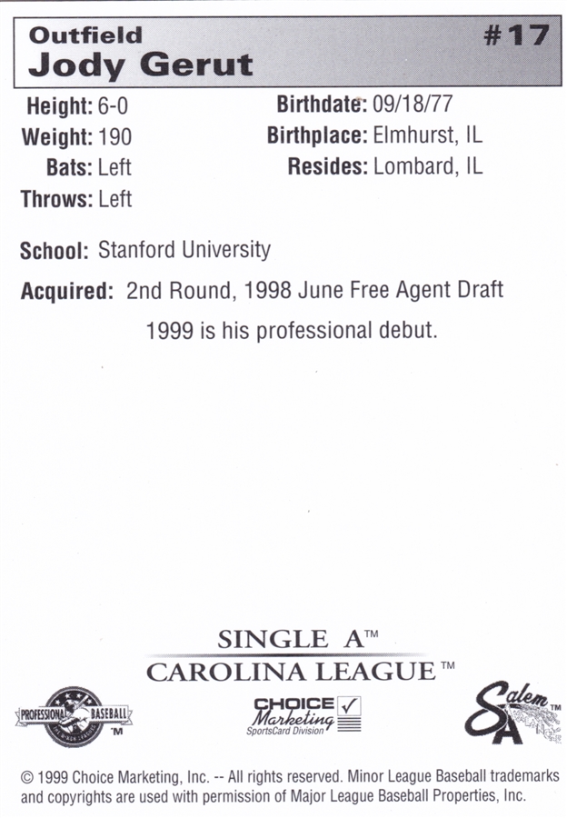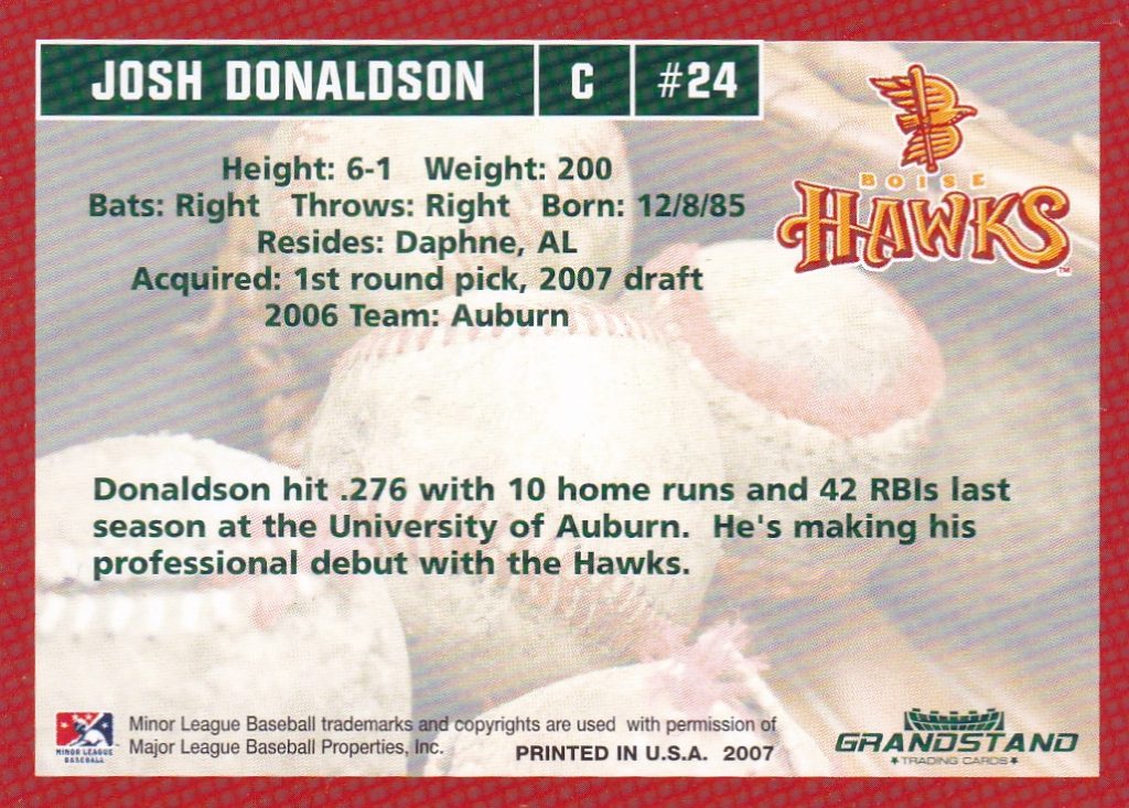 -2000 Grandstand Salem Avalanche #NNO Josh Bard