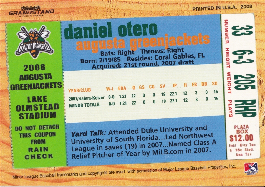 -2008 Grandstand Eugene Emeralds #NNO Daniel Robertson