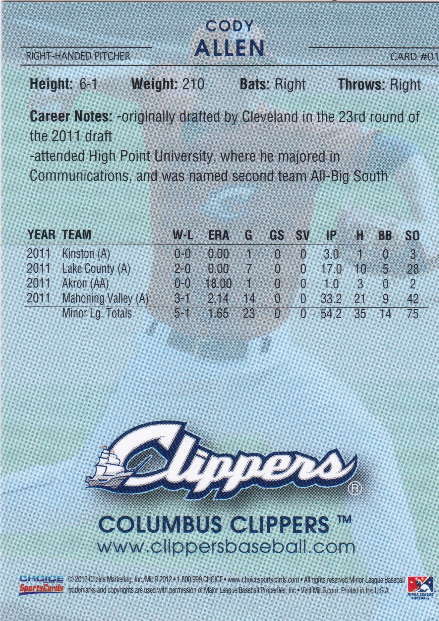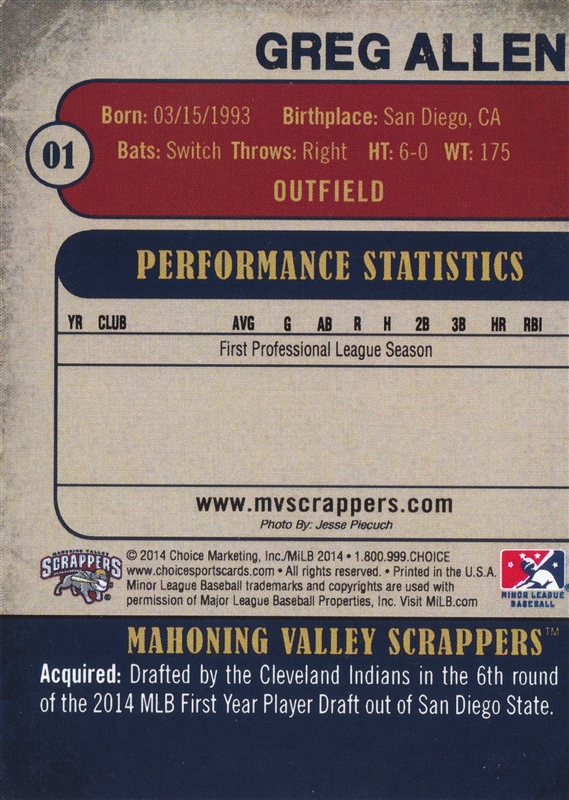 2014 Choice Mahoning Valley #1 Greg Allen (b)