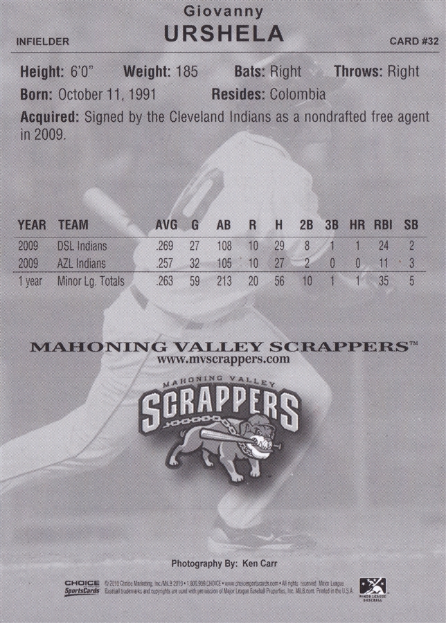 2018 Choice Mahoning Valley Scrappers Luis Oviedo