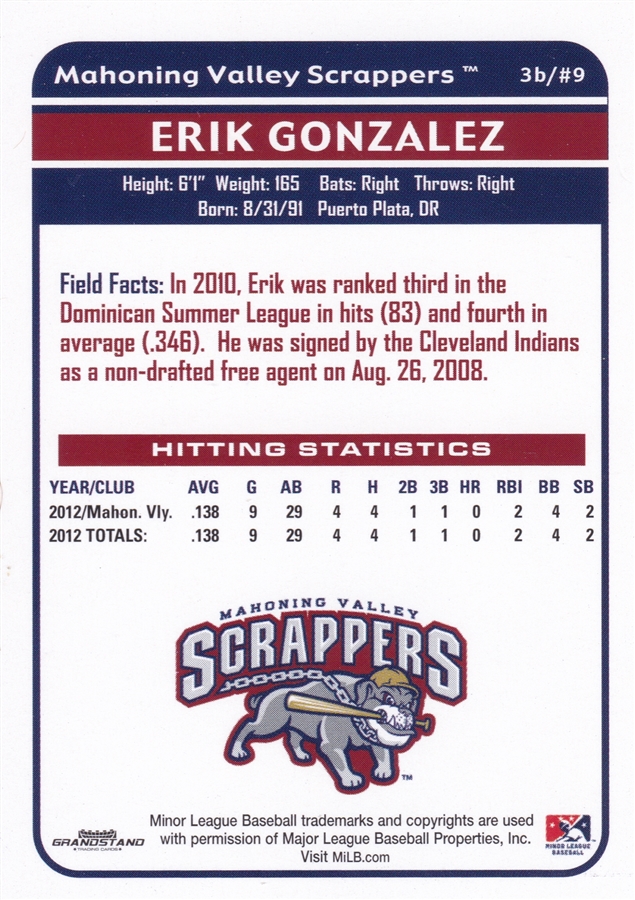 2013 Grandstand Mahoning Valley Scrappers Erik Gonzalez (b)