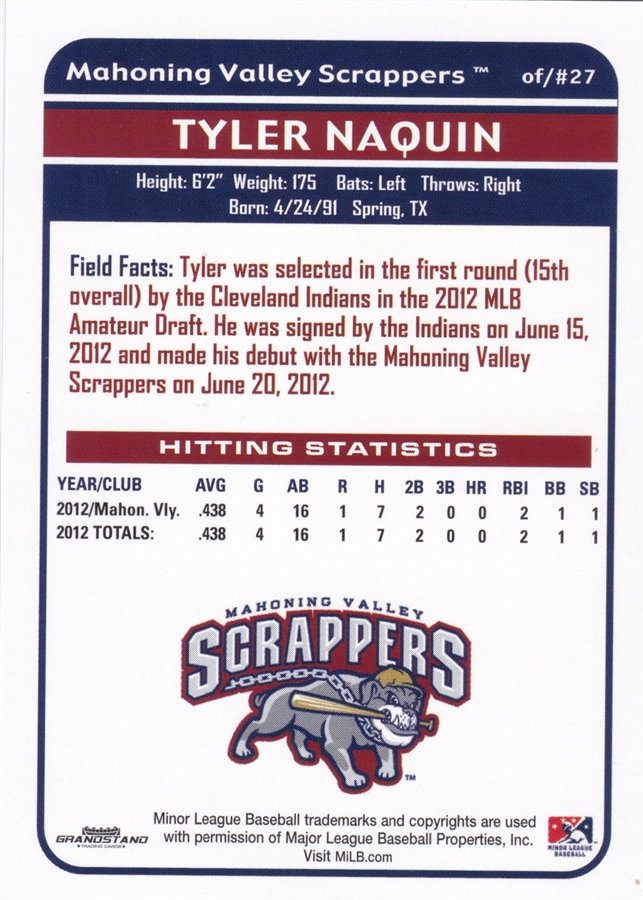 2013 Grandstand Mahoning Valley Scrappers Tyler Nanquin (b)