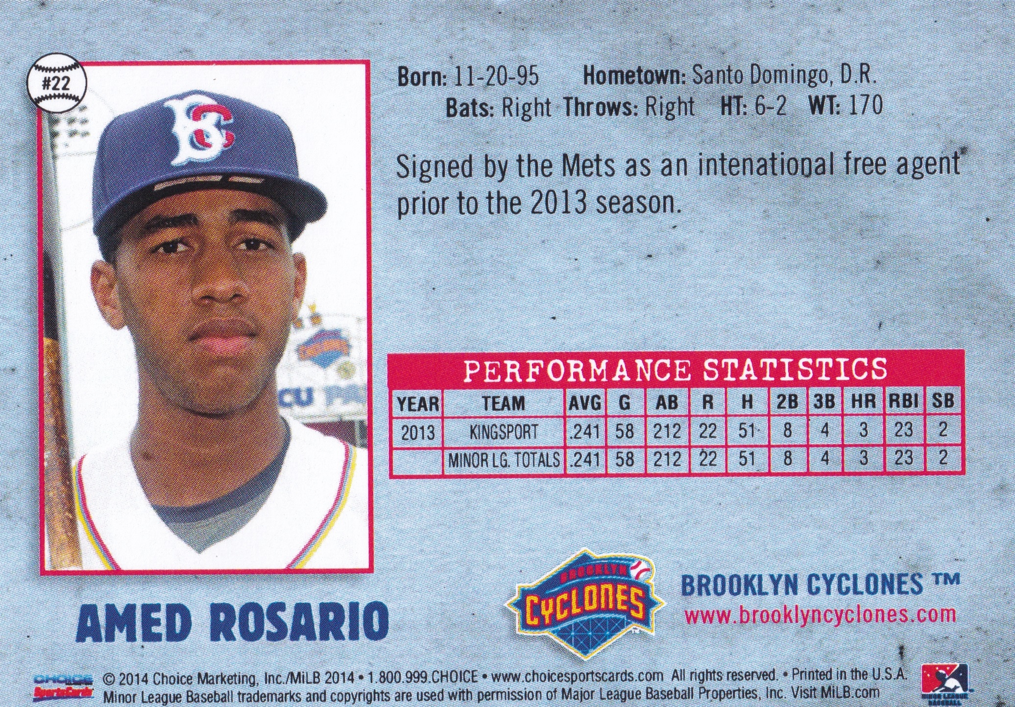 2014 Choice Brooklyn Cyclones Amed Rosario #22
