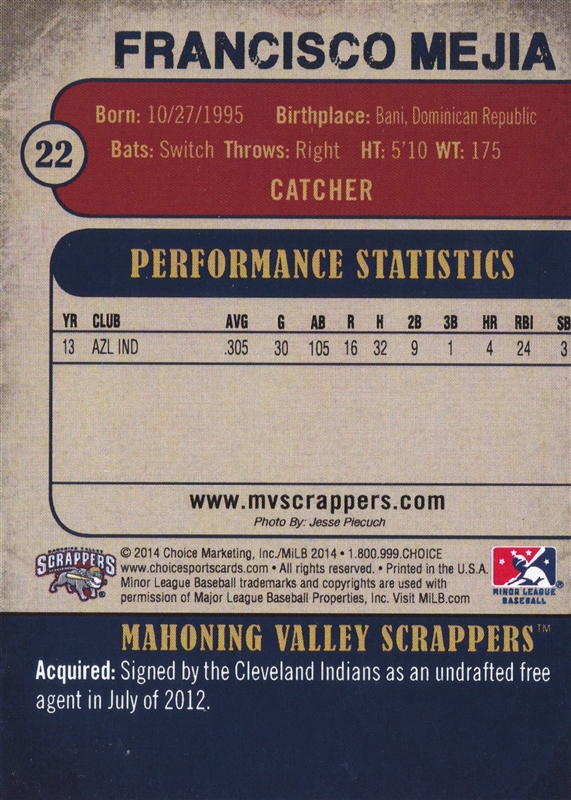 2014 Choice Mahoning Valley #22 Francisco Mejia (b)