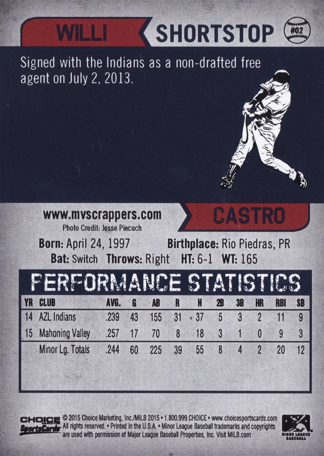 2015 Choice Mahoning Valley Scrappers #2 Willi Castro