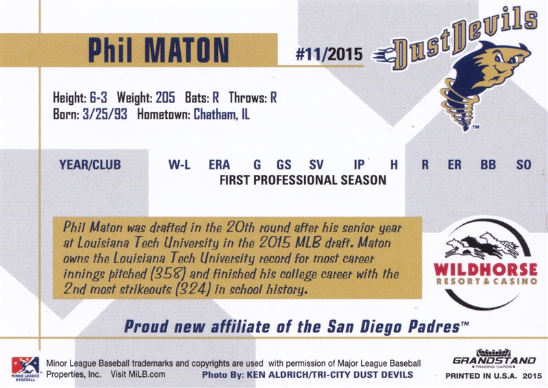 2015 Grandstand Tri City Dust Devils #11 Phil Maton (b)