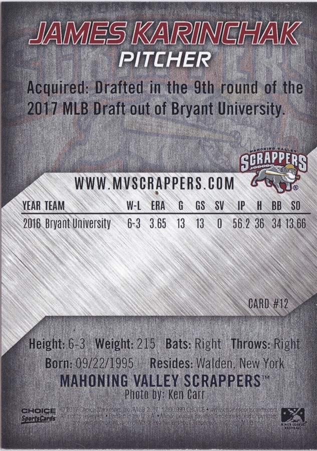 2017 Choice Mahoning Valley Scrappers James Karinchak (b)