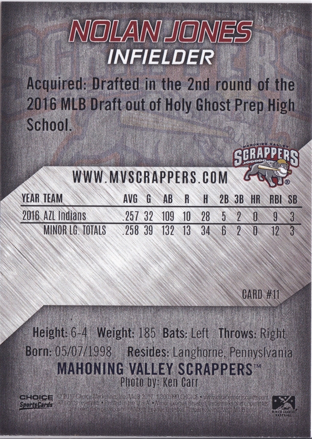 2017 Choice Mahoning Valley Scrappers Nolan Jones (b)