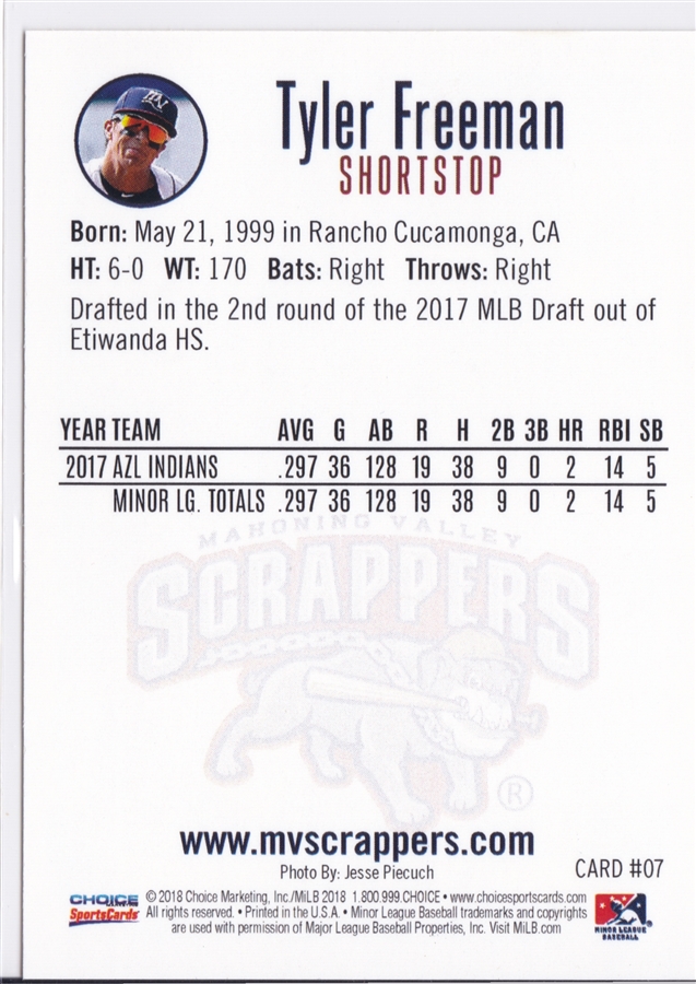 2018 Choice Mahoning Valley Scrappers Tyler Freeman (b)