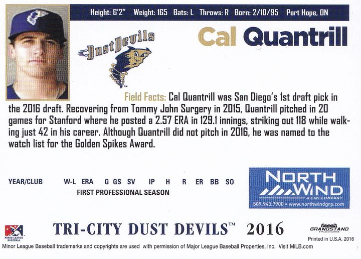 2018 Grandstand Tri-City Dust Devils Cal Quantrill [b]