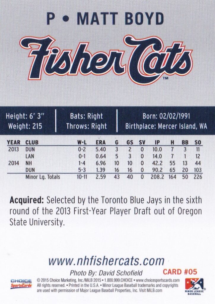 2015 New Hampshire Fisher Cats #5 Matt Boyd [b]