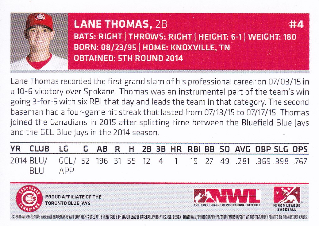 2015 Vancouver Canadians #4 Lane Thomas [b]