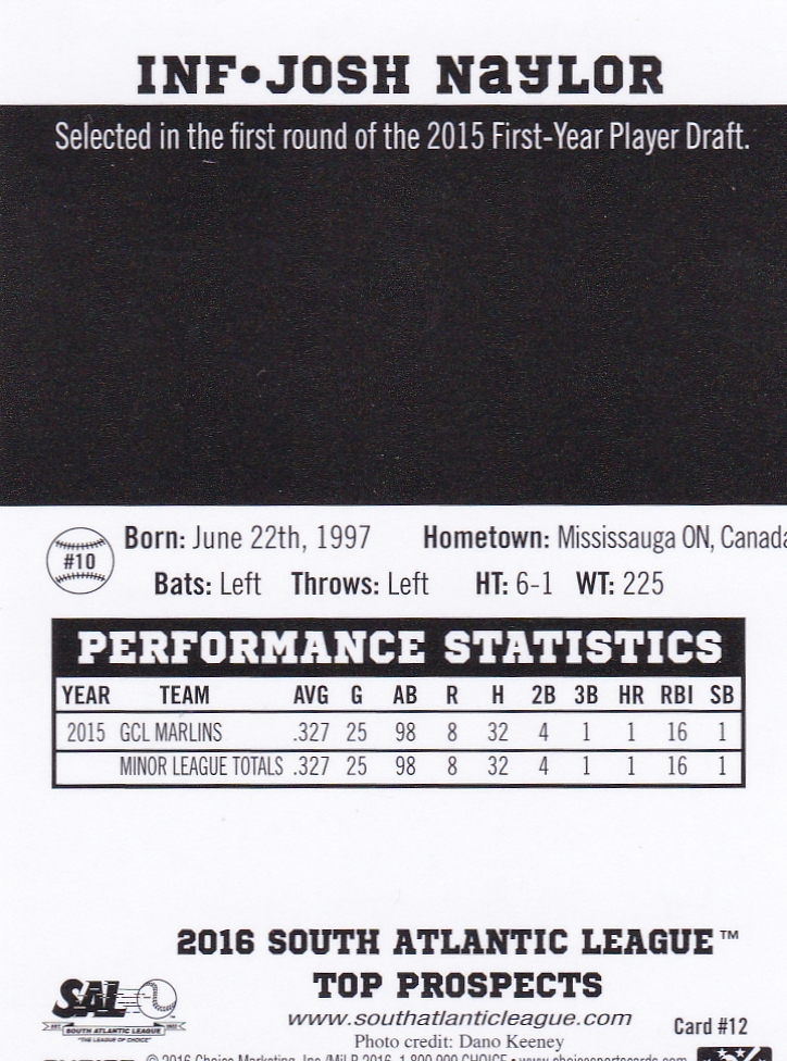 2016 Choice South Atlantic League Top Prospects #12 Josh Naylor [b]