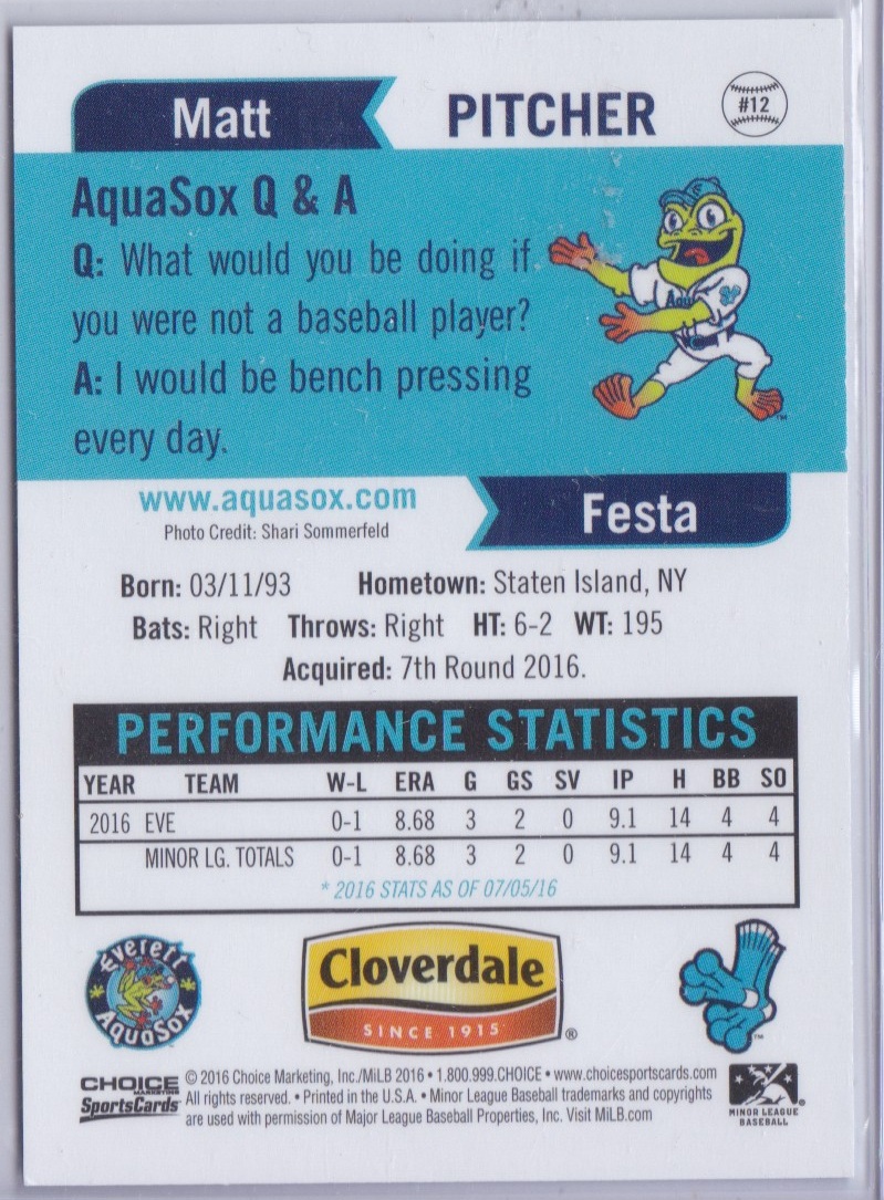 2016 Everett Aquasox #12 Matt Festa [b]
