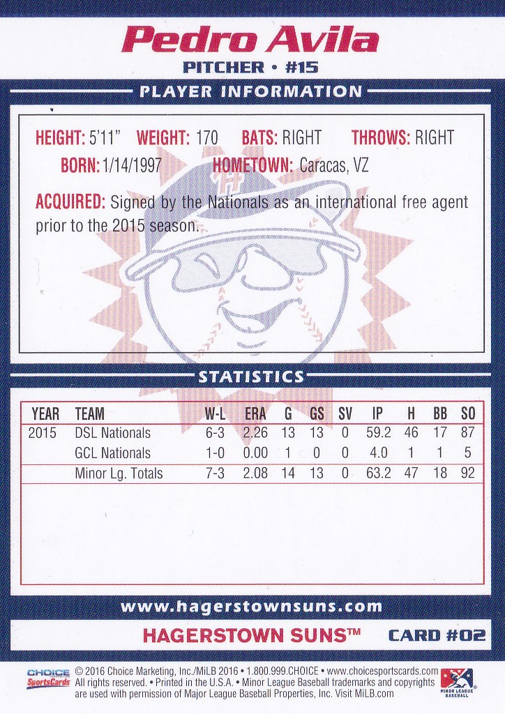 2016 Hagerstown Suns #2 Pedro Avila [b]