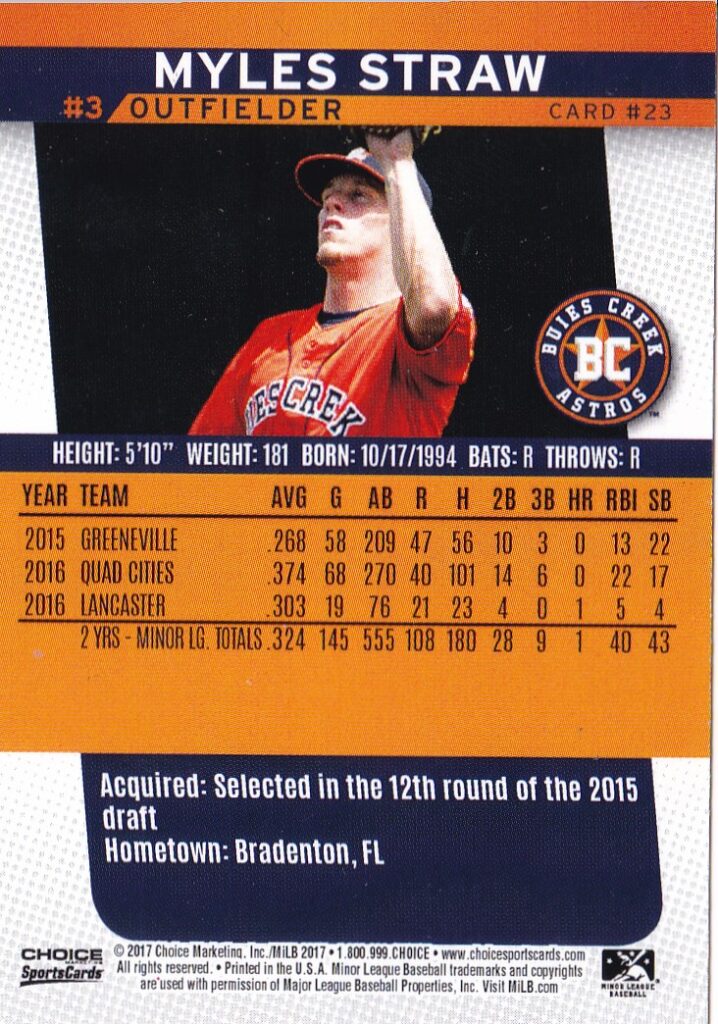 2017 Buies Creek Astros #23 Myles Straw [b]