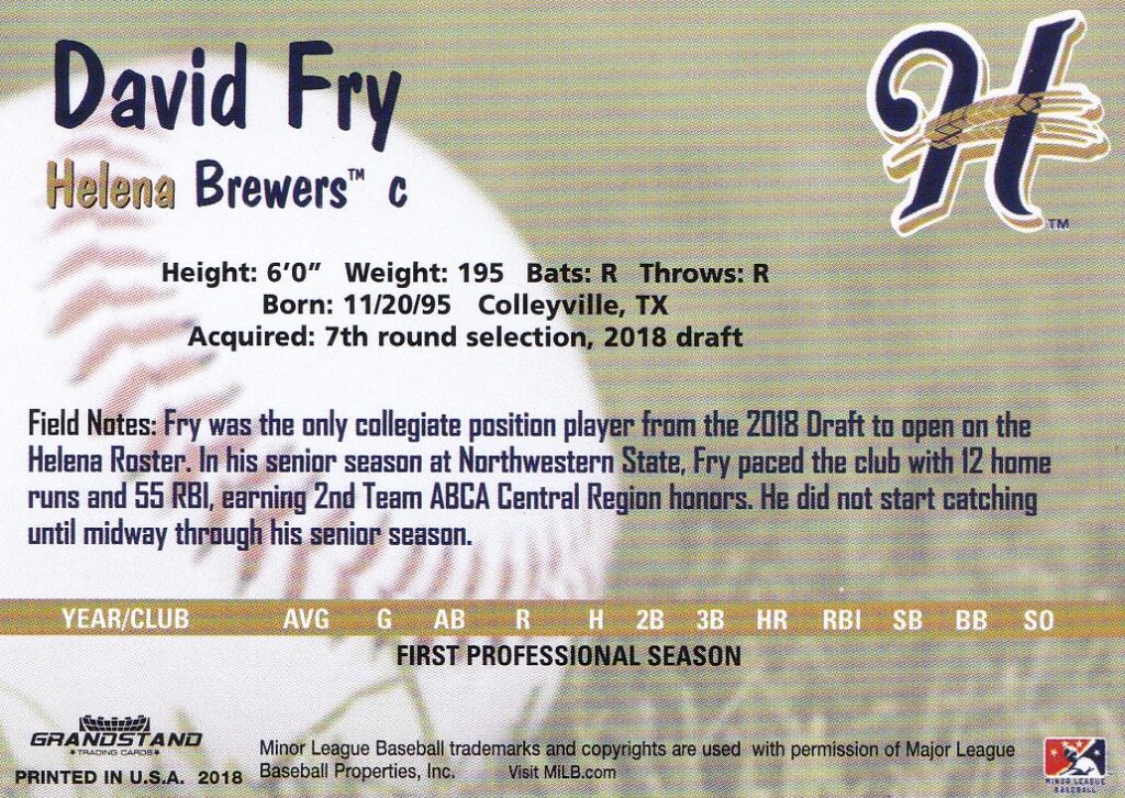 2018 Grandstand Helena Brewers David Fry [b]