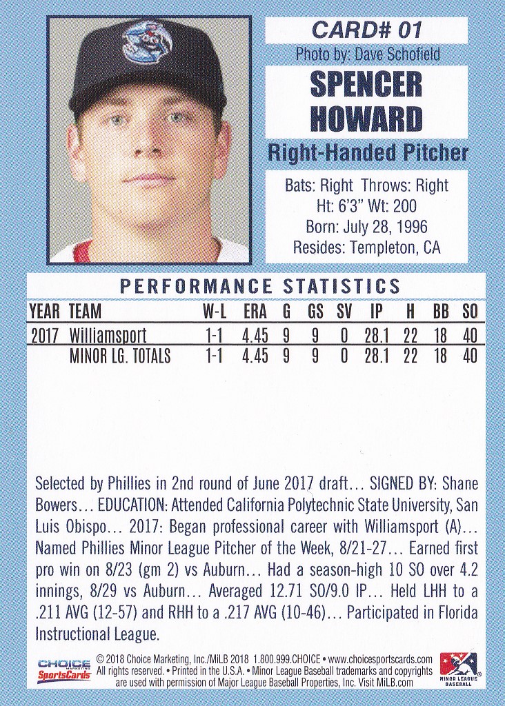 2018 Wilmington BlueClaws #1 Spencer Howard [b]