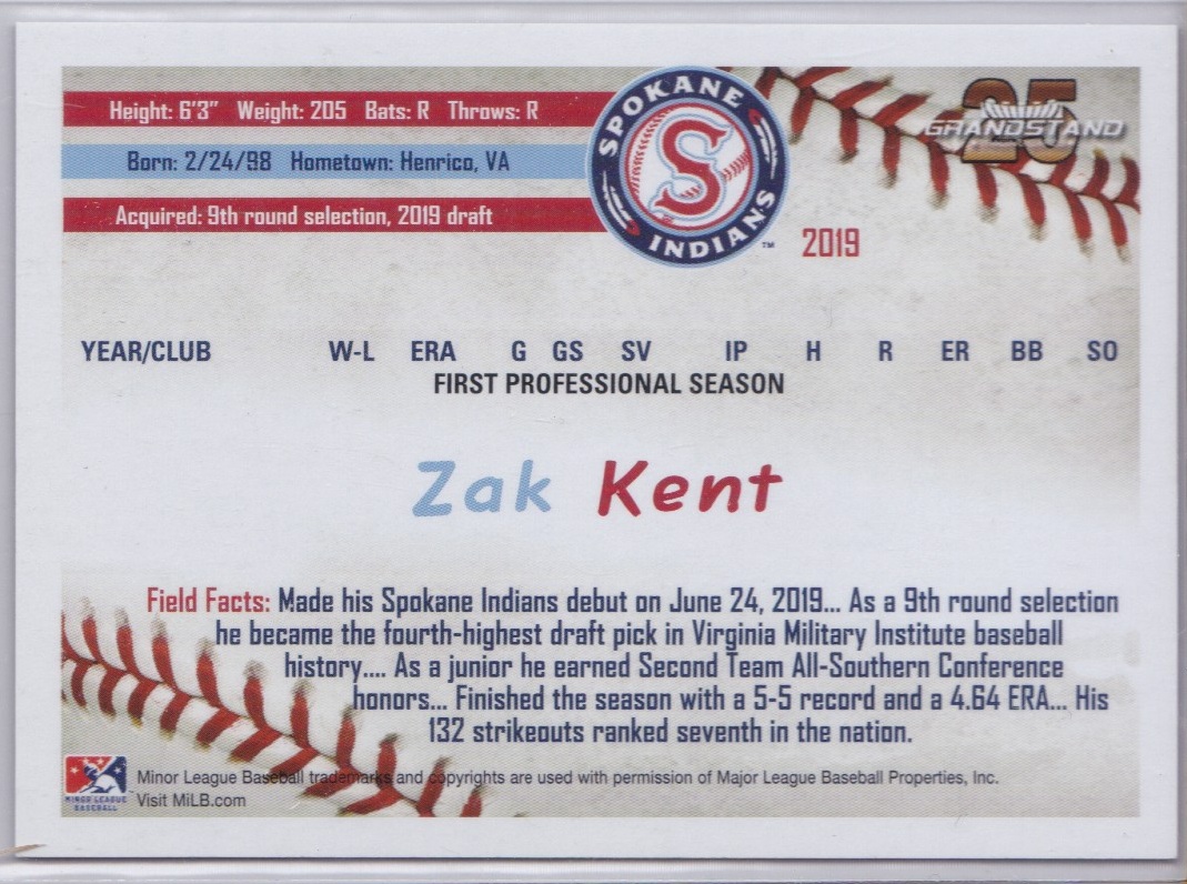 2019 Spokane Indians #NA Zak Kent [b]