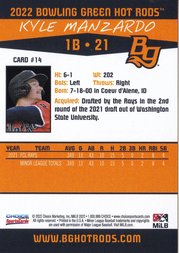 2022 Choice Bowling Green Hot Rods #14 Kyle Manzardo