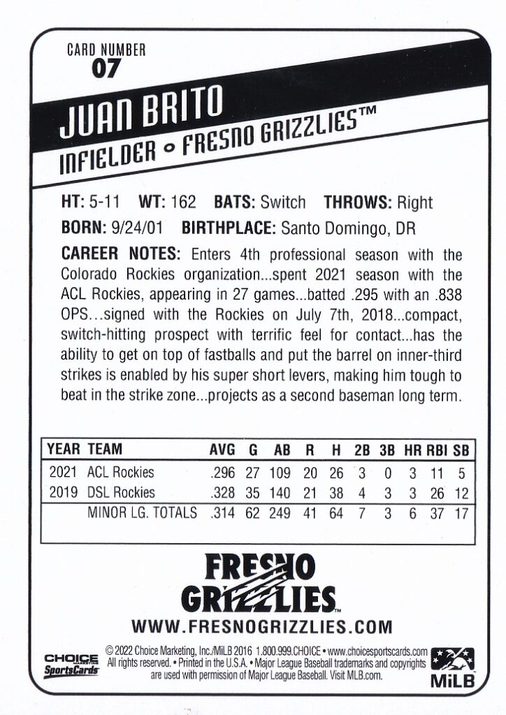2022 Choice Frenso Grizzlies #7 Juan Brito [b]