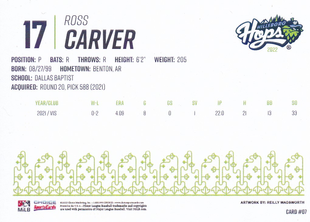 2022 Choice Hillsboro Hops #17 Ross Carver