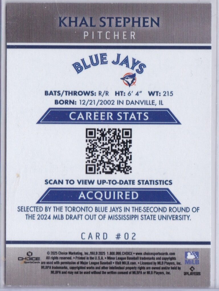 2025 Dunedin Blue Jays #2 Khal Stephen [b]