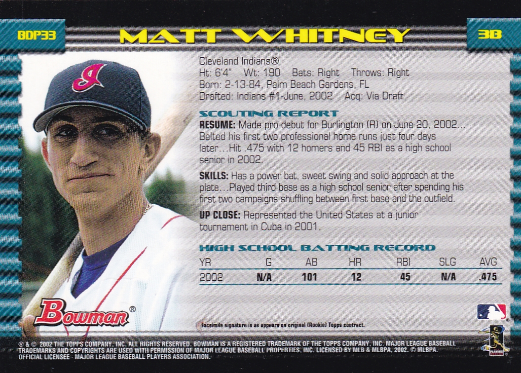 -2002 Grandstand Appalachian League Top Prospects #NNO Matt Whitney