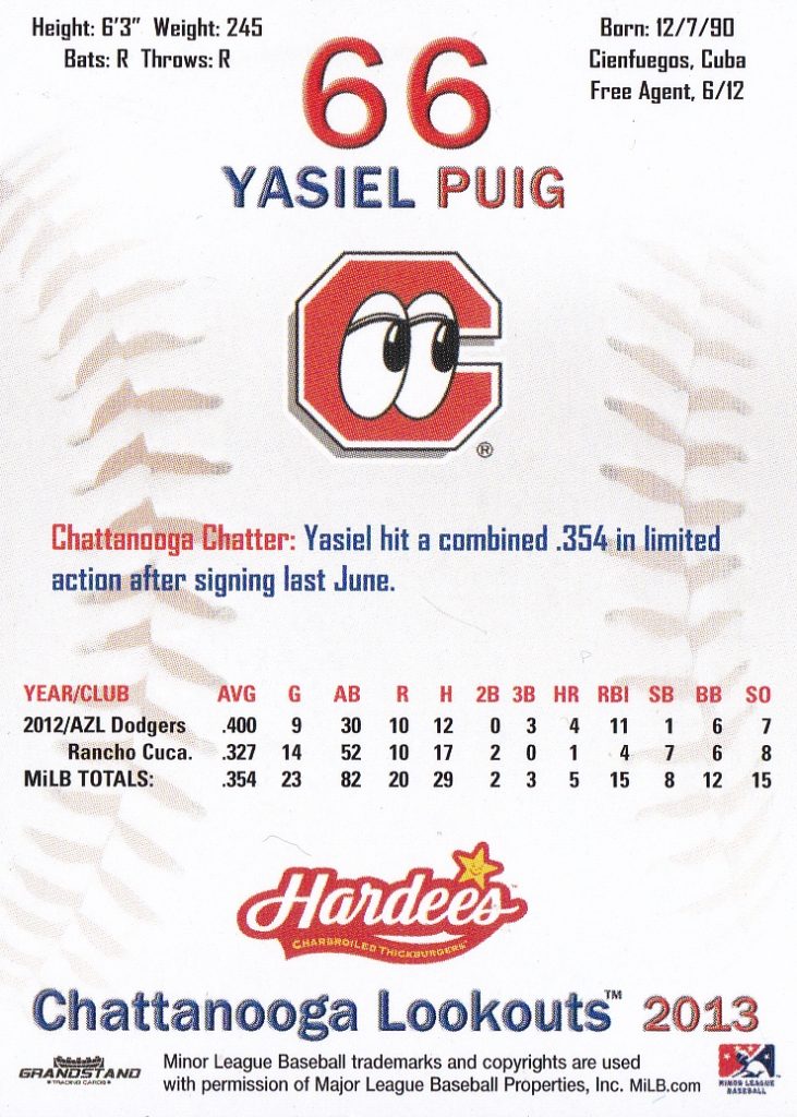 2013 Grandstand Chattanooga Lookouts #NNO Yasiel Puig