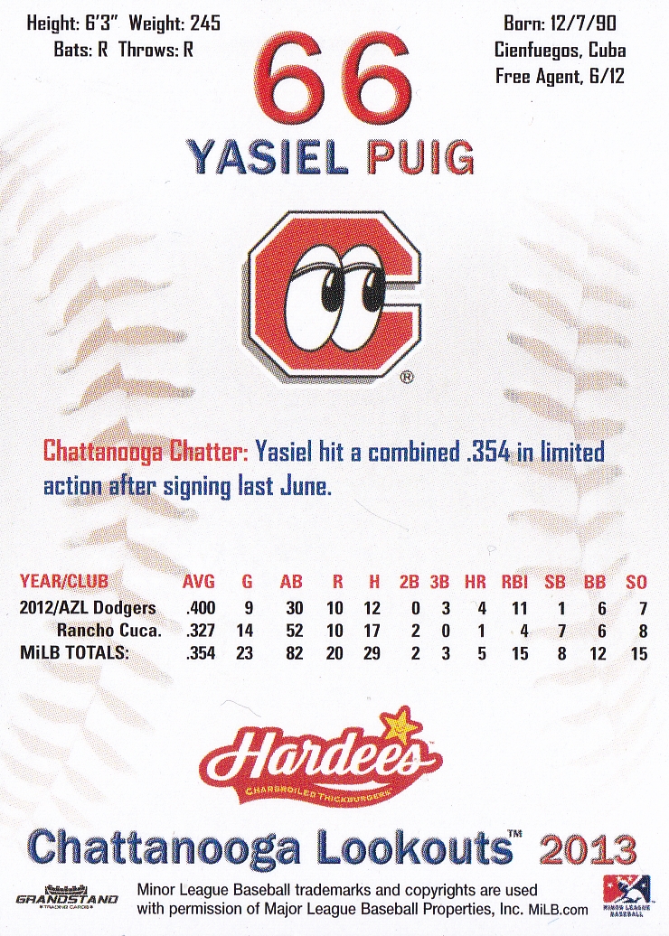 2013 Grandstand Chattanooga Lookouts #NNO Yasiel Puig [b]